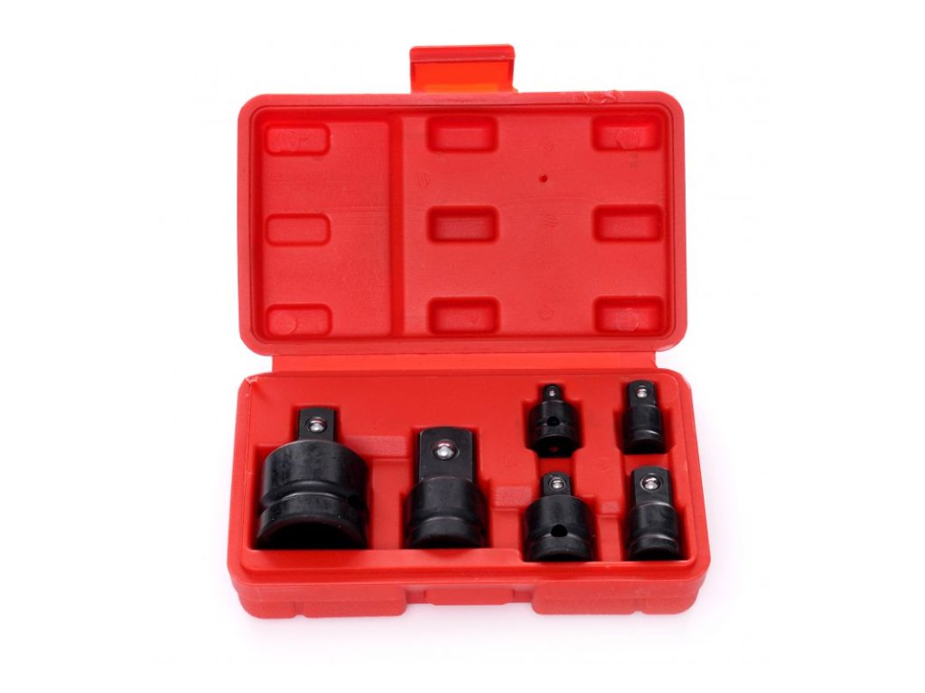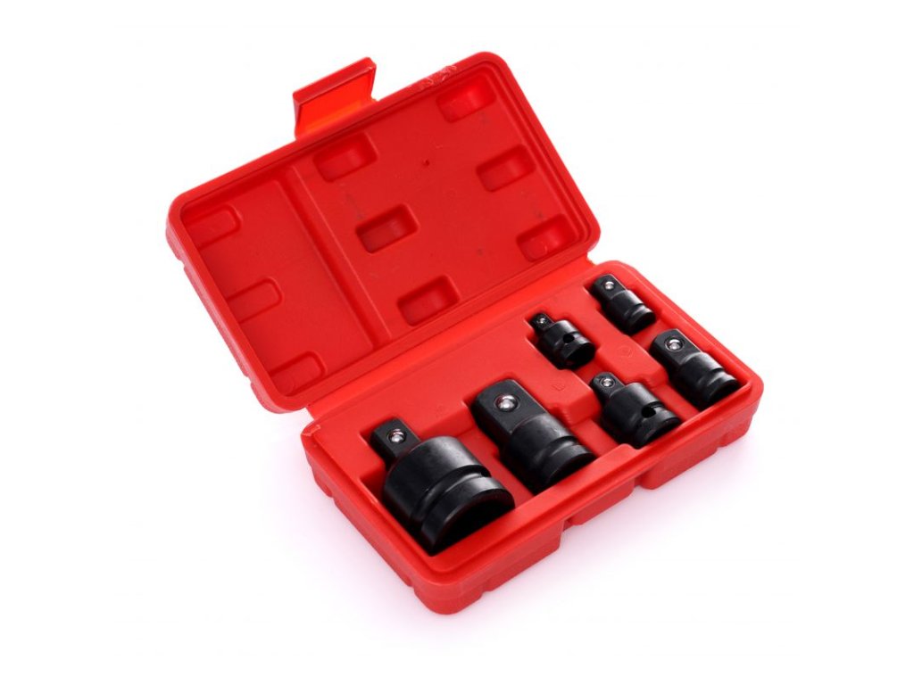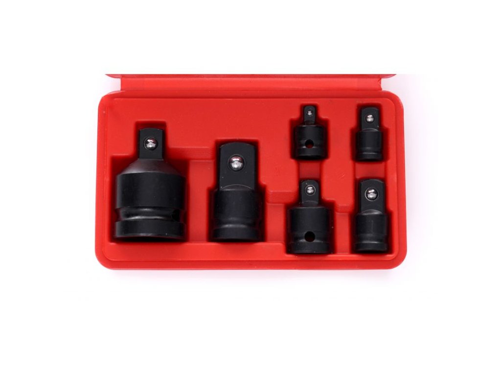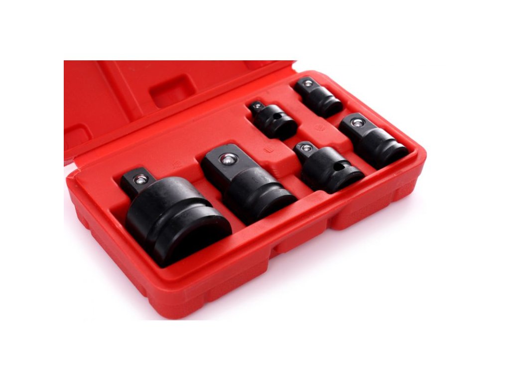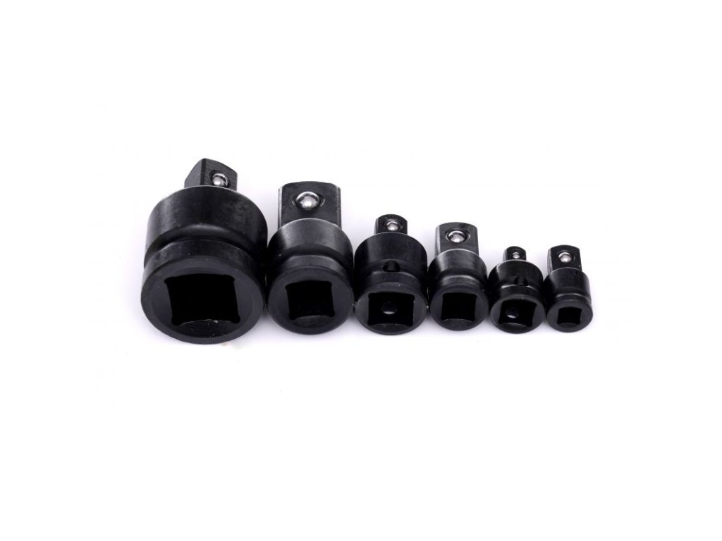 - Velikosti adaptérů: 1/4" na 3/8", 3/8" na 1/4", 3/8" na 1/2", 1/2" na 3/8", 1/2" na 3/4", 3/4" na 1/2"