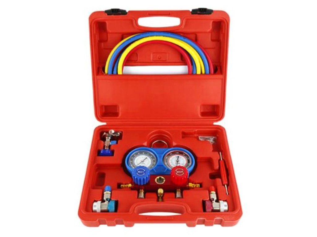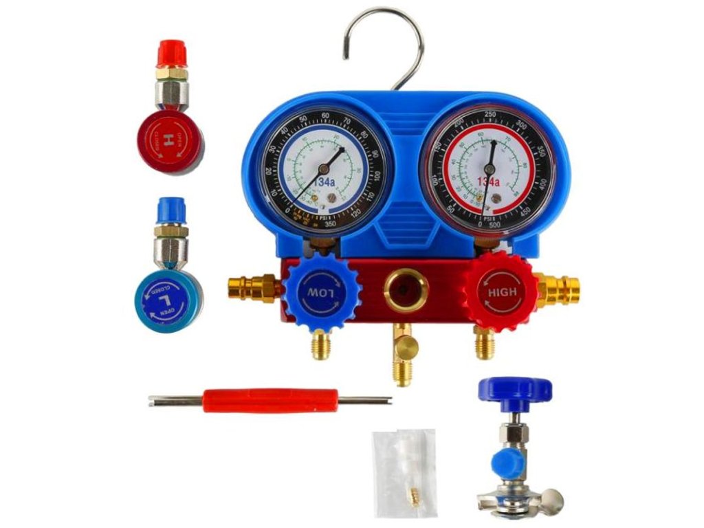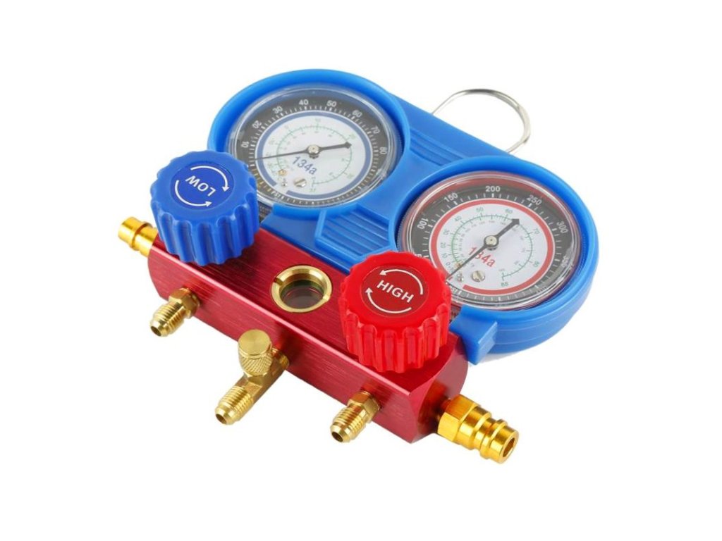 - Manometry: Dva velké, snadno čitelné manometry pro vysoký a nízký tlak