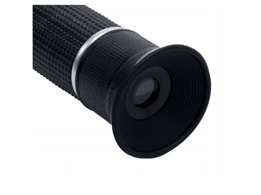 - Namiřte refraktometr na zdroj světla a dívejte se do hledáčku
