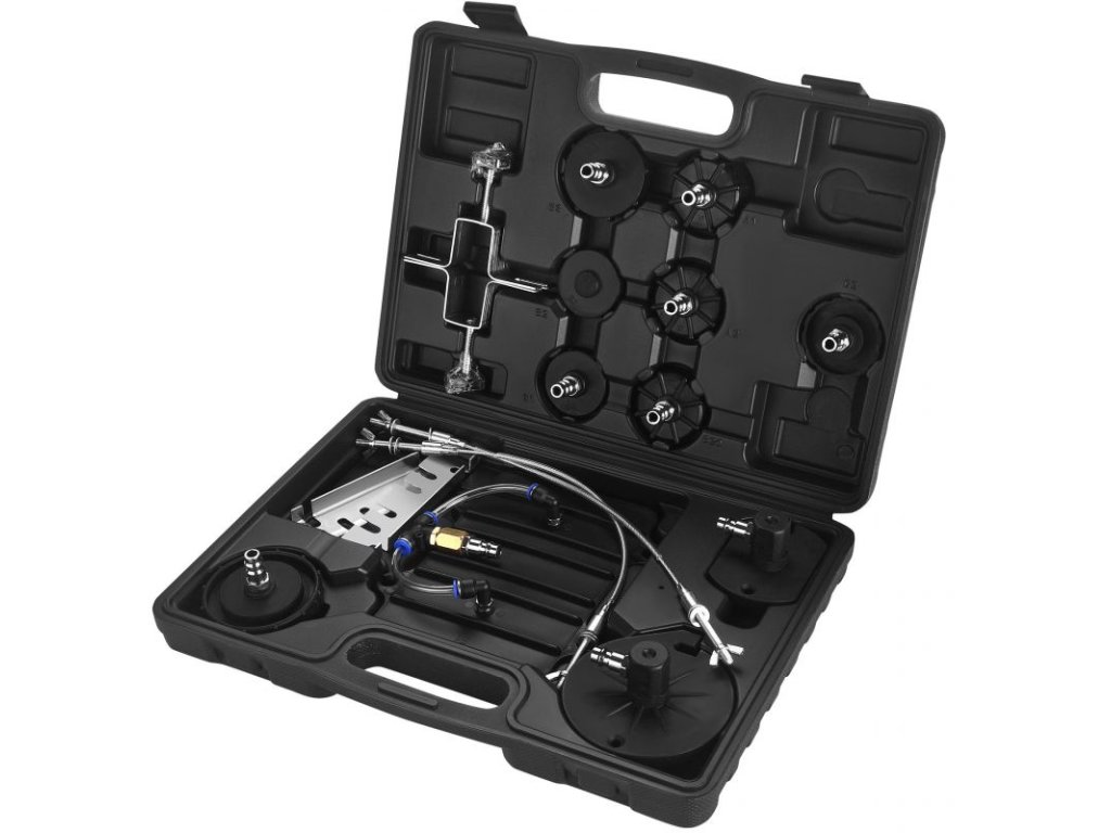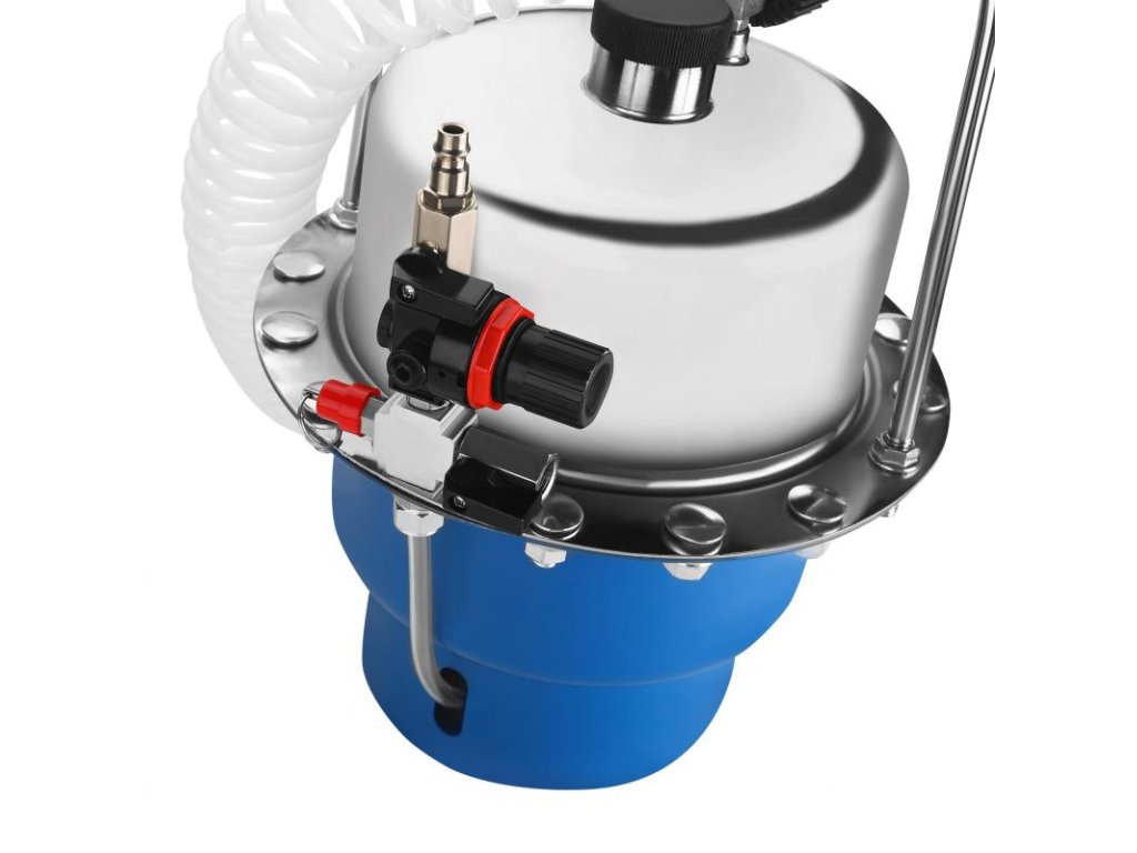 Univerzální použití, odolná konstrukce (hliník + pevný plast) a dlouhá 5,2m hadice usnadňují práci v dílně i v garáži. Pracovní tlak 10–40 PSI (0,69–2,76 bar) a spotřeba vzduchu 4,5 CFM zajišťují stabilní podtlak pro rychlé a čisté odvzdušnění.