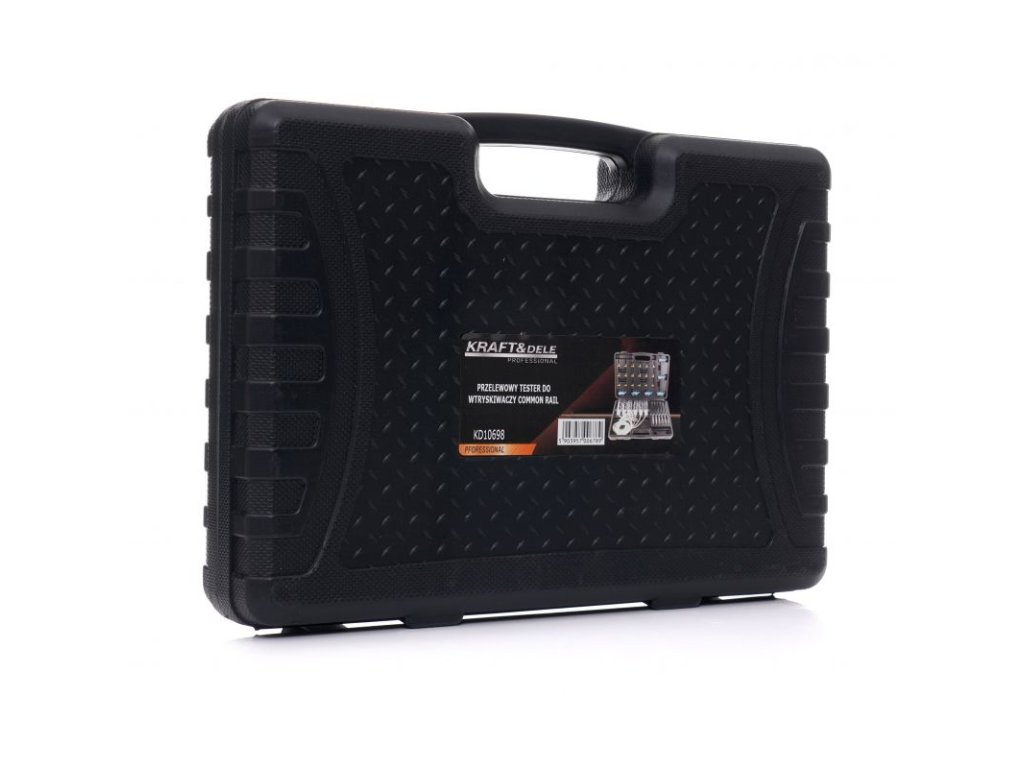 Tester tlaku vstřikovačů KD10698 od značky Kraft&Dele je nezbytným nástrojem pro diagnostiku vstřikovačů v dieselových motorech do šesti válců. Díky systému přívodu paliva Common Rail umožňuje tester rychlou a snadnou diagnostiku na základě měření množství paliva vypouštěného na přepadu vstřikovače. Tento tester pomáhá zjistit případné poškození, nečistoty nebo netěsnosti ve vstřikovačích, což zjednodušuje opravy a údržbu dieselových motorů.