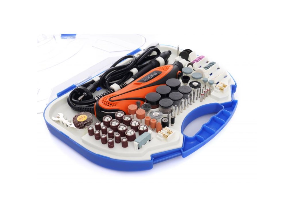 - příslušenství (kotouče, vřetena, držáky brusných papírů, gravírovací řezačka, pouzdra, redukce, dláta, disky, vrtáky, brusný papír, kartáče ...)
