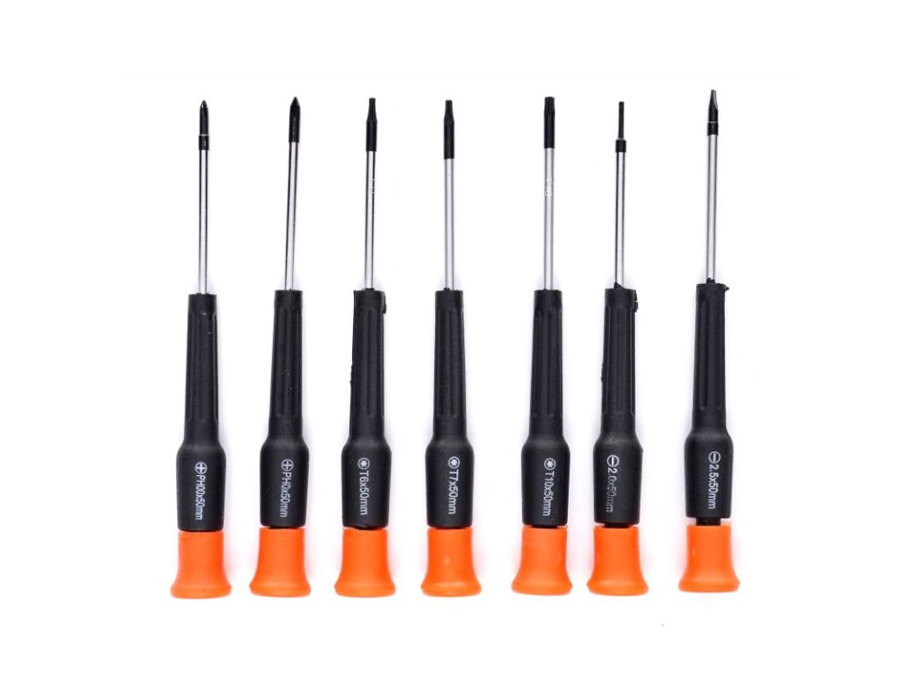 - Typy nástrojů: Ploché, křížové, Torx, imbusové