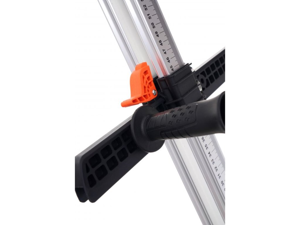 - Vodicí lišta se stupnicí: Přesné nastavení šířky řezu díky měřicí stupnici v centimetrech.
