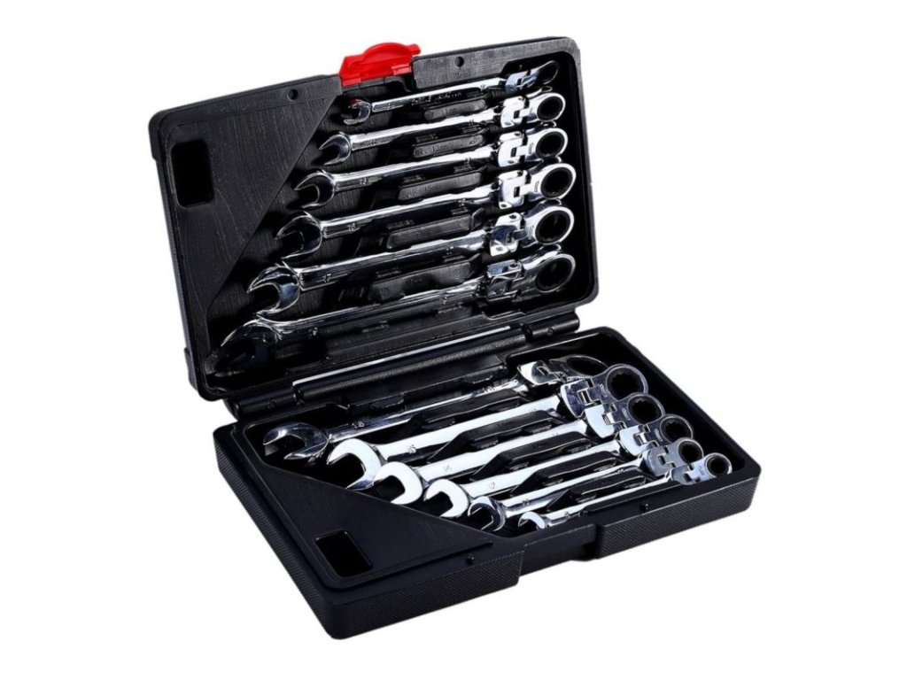 Sada 12 ks kombinovaných klíčů plochých s kloubem a ráčnou značky Kraft&Dele