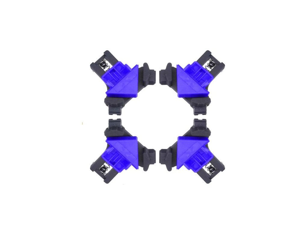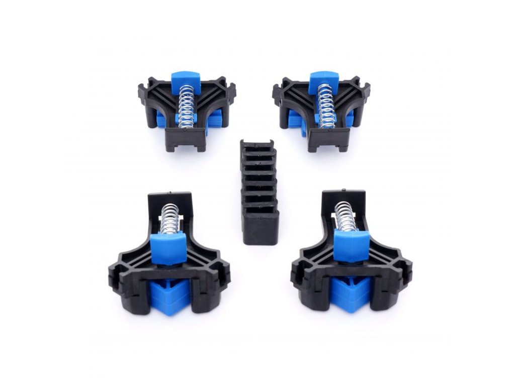 Sada 4 tesařských upínačů Kraft&Dele umožňuje rychlé a snadné upevnění desek, rámů atd. pod úhlem 90°