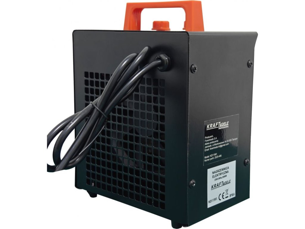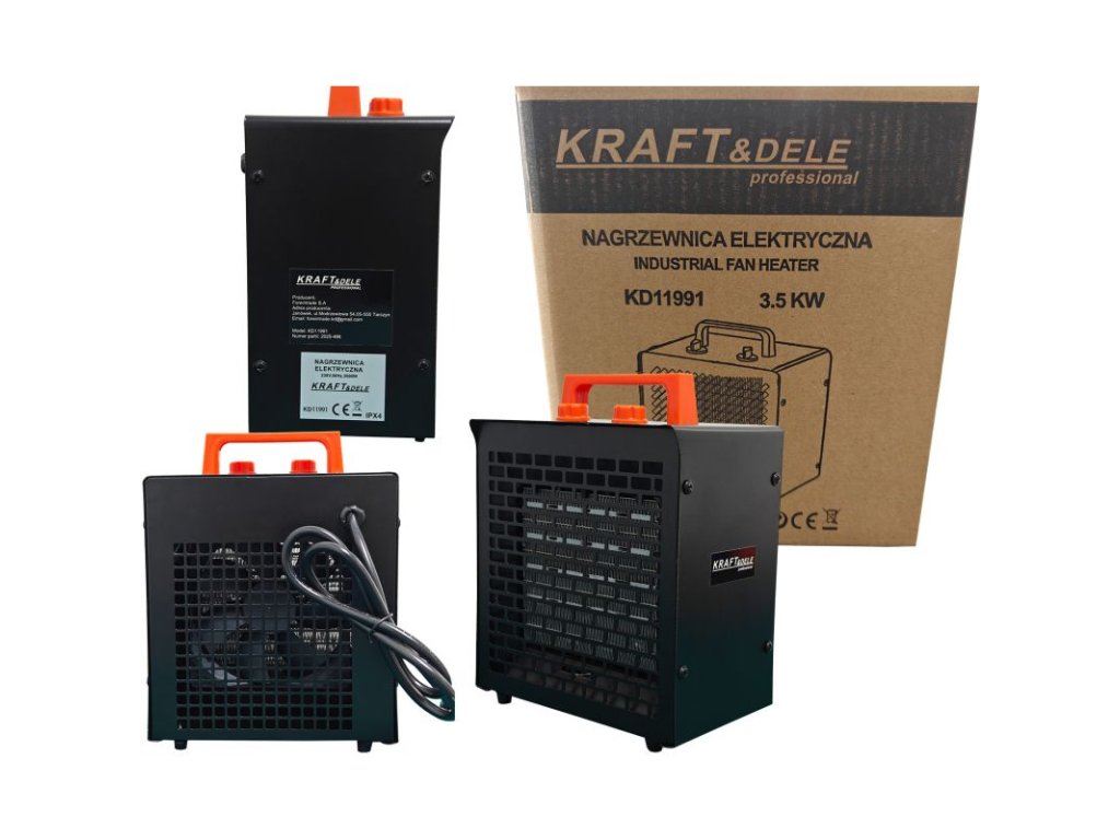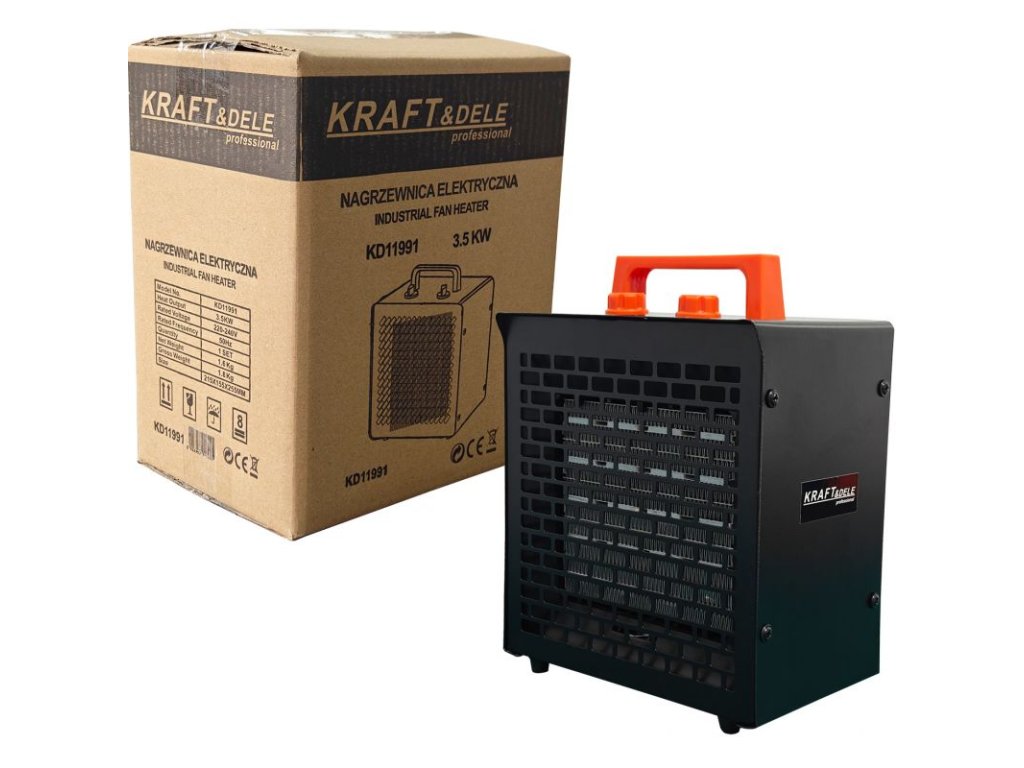 Kompaktní a výkonné elektrické topidlo KRAFT&DELE KD11991 je určené pro rychlé vytápění domácností, dílen, skladů, skleníků i stavenišť. Výkon 3500?W rychle zvyšuje teplotu a udržuje stabilní komfort. Vestavěný termostat a samoresetující tepelná pojistka zajišťují bezpečný, plně automatický provoz; nerezový topný prvek a ocelová skříň s žáruvzdorným lakem garantují odolnost při náročném použití.