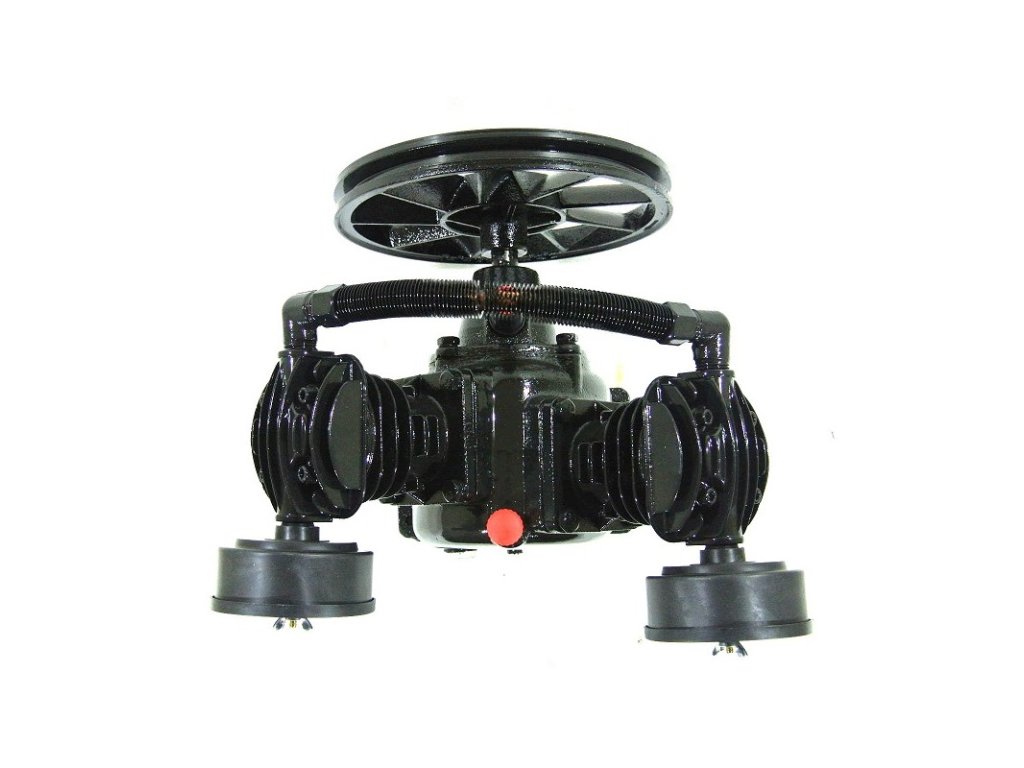 Olejem mazaný vzduchový kompresor vybavený řemenicí, která současně ochlazuje kompresor a boční chladič vzduchu