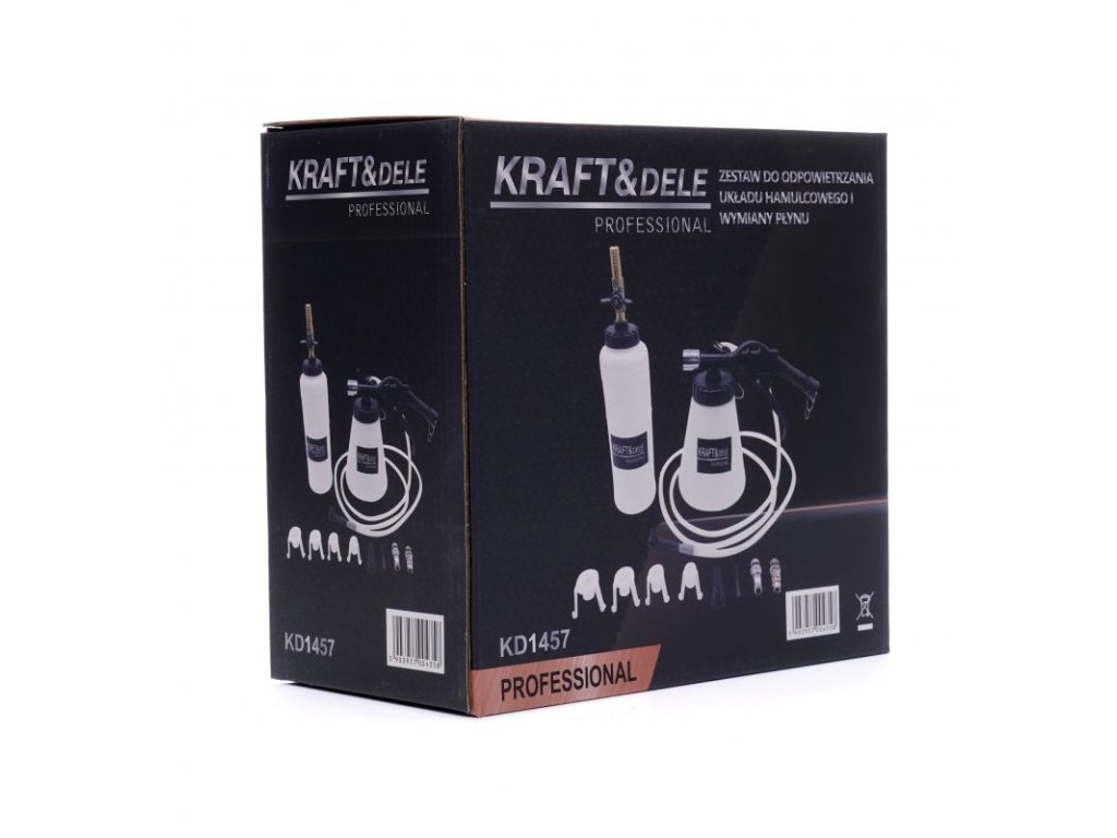 Sada na odvzdušňování a výměnu brzdové kapaliny KD1457 od značky Kraft&Dele je praktický nástroj pro efektivní a rychlou výměnu brzdové kapaliny a odvzdušňování brzdového systému. Je vhodná pro osobní i nákladní automobily.
