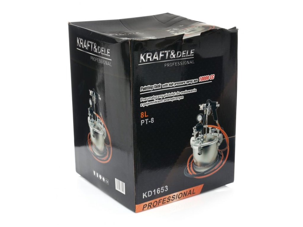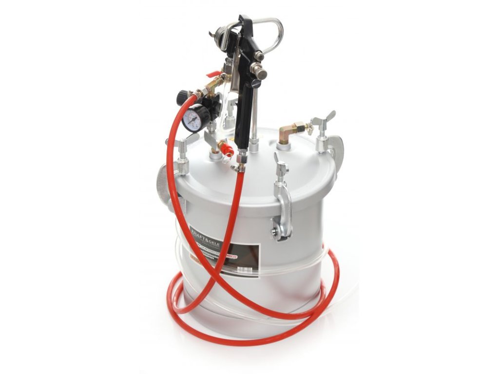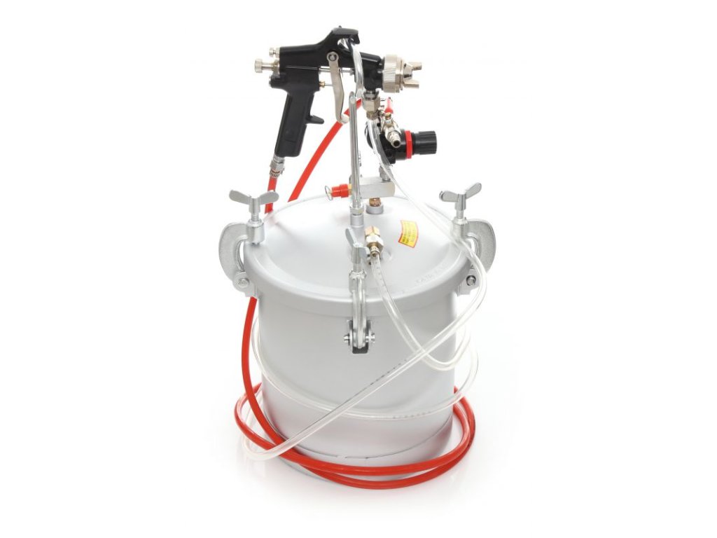- Pneumatická lakovací pistole s externí nádrží 8 litrů je ideální sada pro venkovní použití a velké plochy