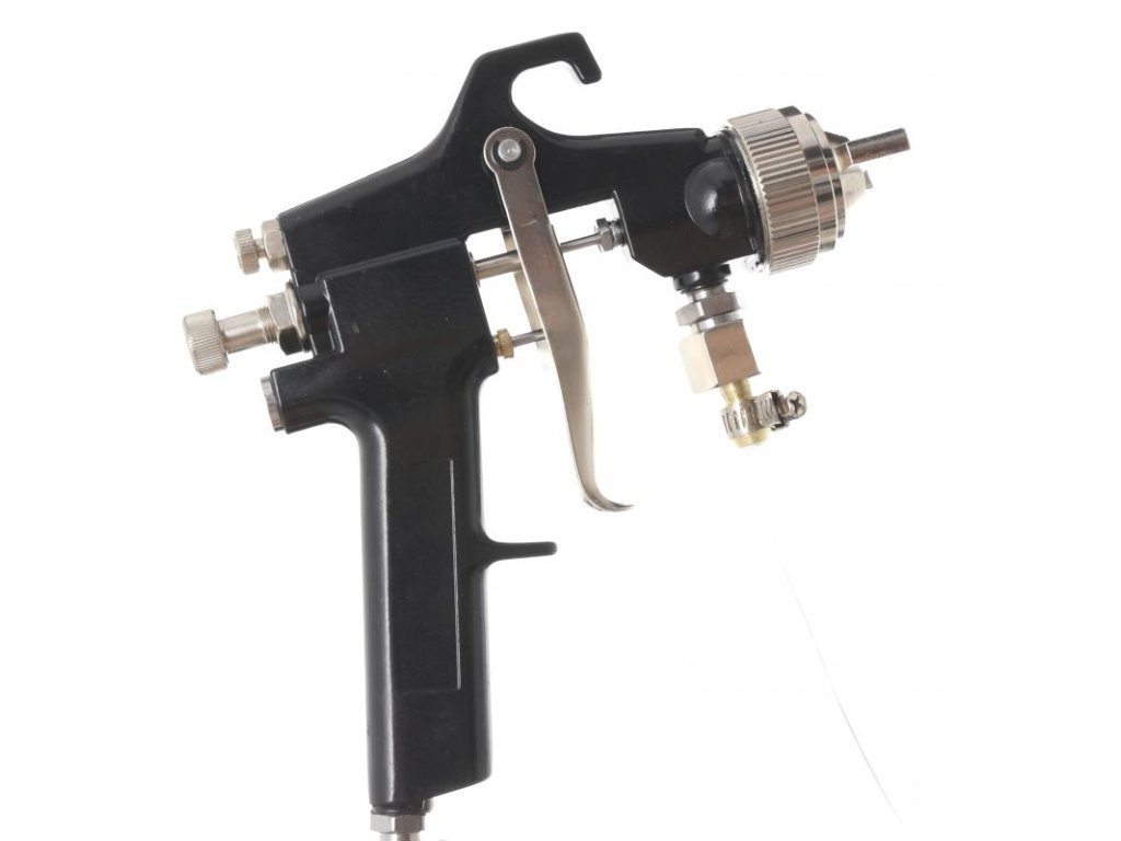 - Barva je pod tlakem přiváděna do stříkací pistole a stříkána tam stlačeným vzduchem