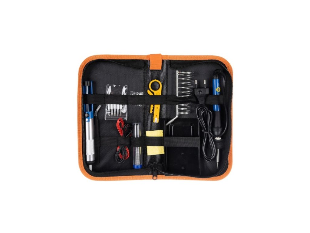 Jedná se o XL set, ve kterém najdete pájku a pájecí příslušenství jako je cín, vyměnitelné hroty, pinzety a mnoho dalších nástrojů