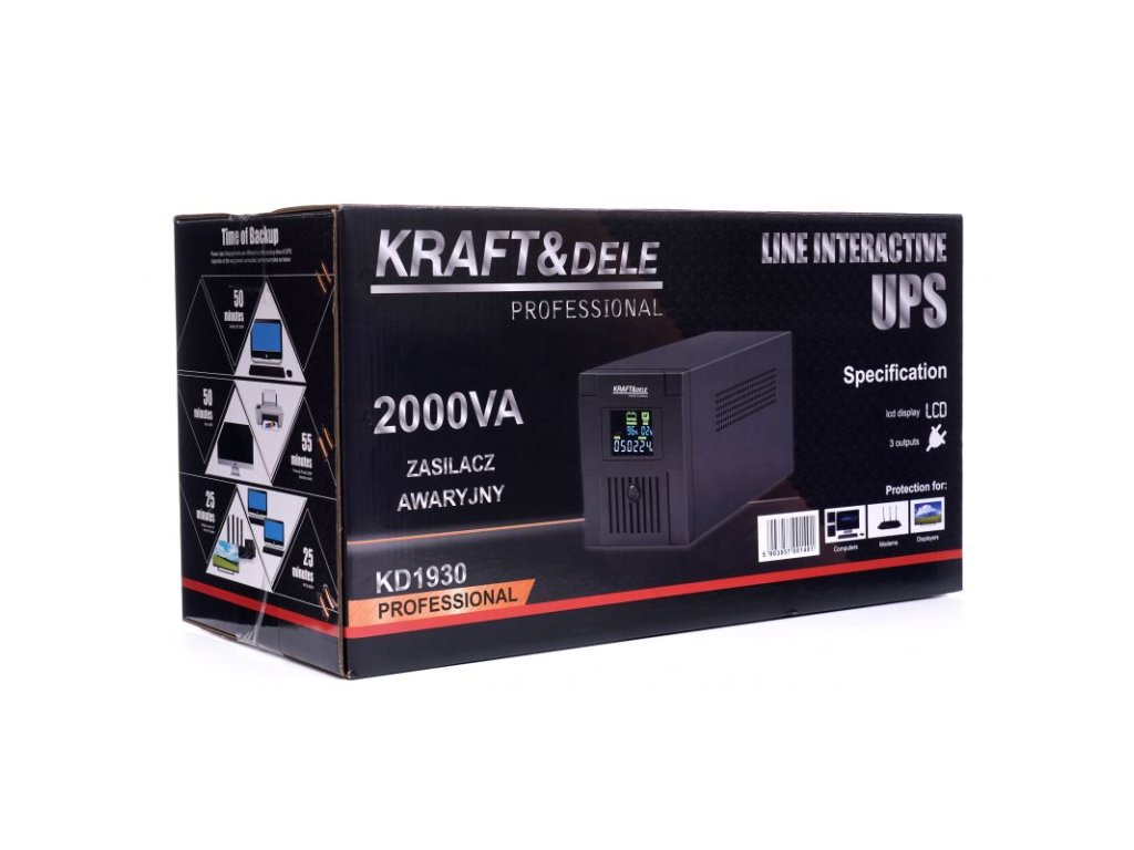 Záložní zdroj UPS Kraft&Dele se vyznačuje vysokou spolehlivostí a trvanlivostí; navíc disponuje přehledným LCD displejem