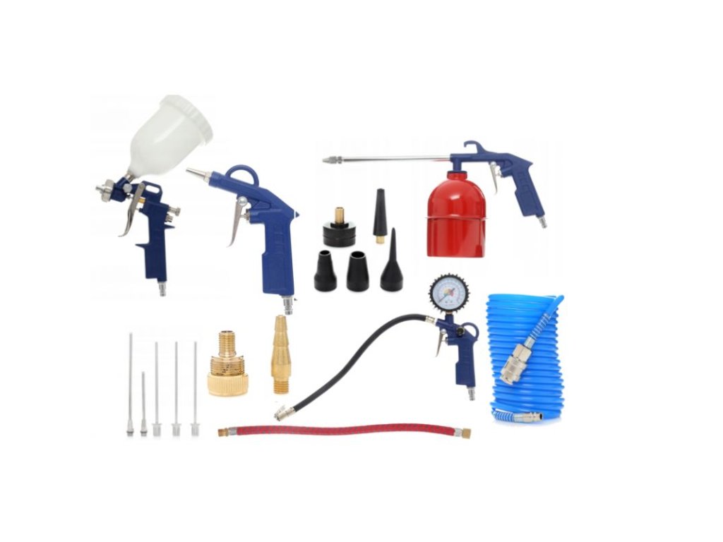 Pneumatická sada KD2100 od značky Kraft&Dele je ideálním doplňkem ke kompresoru, který se uplatní jak v domácnosti, tak v profesionálních dílnách. Obsahuje širokou škálu nástrojů pro lakování, čištění, pumpování a další pneumatické aplikace. Díky této sadě lze snadno nanášet laky, kontrolovat tlak pneumatik, čistit povrchy a připojovat různé nástavce pro specifické účely.
