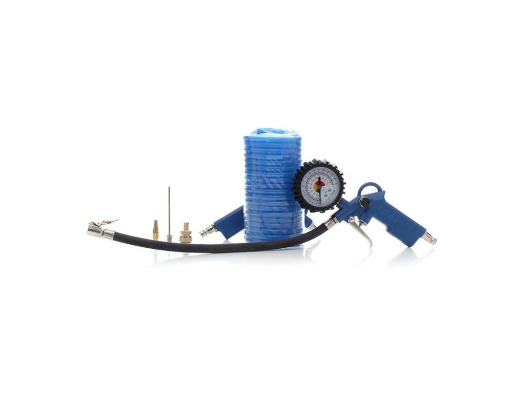 - Nafukovací pistole s manometrem je ideální pro huštění a kontrolu tlaku v pneumatikách. Má gumové pouzdro hodin. Je vybaven odvzdušňovacím ventilem.