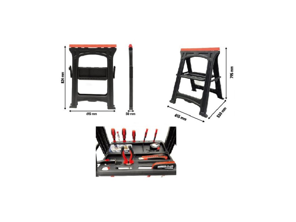 Vysoce kvalitní dílenský stojan, známý také jako kobylka nebo koza značky Kraft & Dele Vám výrazně usnadní práci v dílně a na stavbě