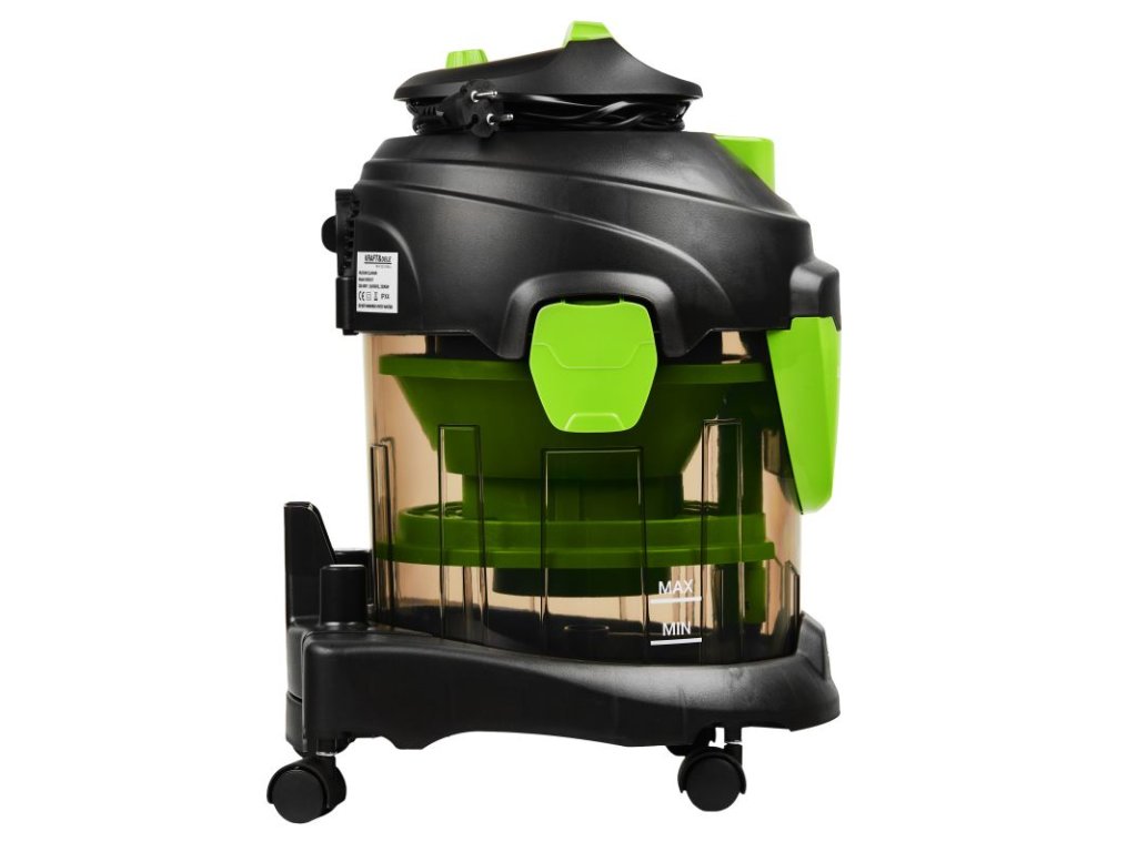 Vysavač má snadno plnitelnou uzamykatelnou nádrž na čistou vodu vyrobenou z poloprůhledného plastu, která umožňuje regulovat hladinu vody