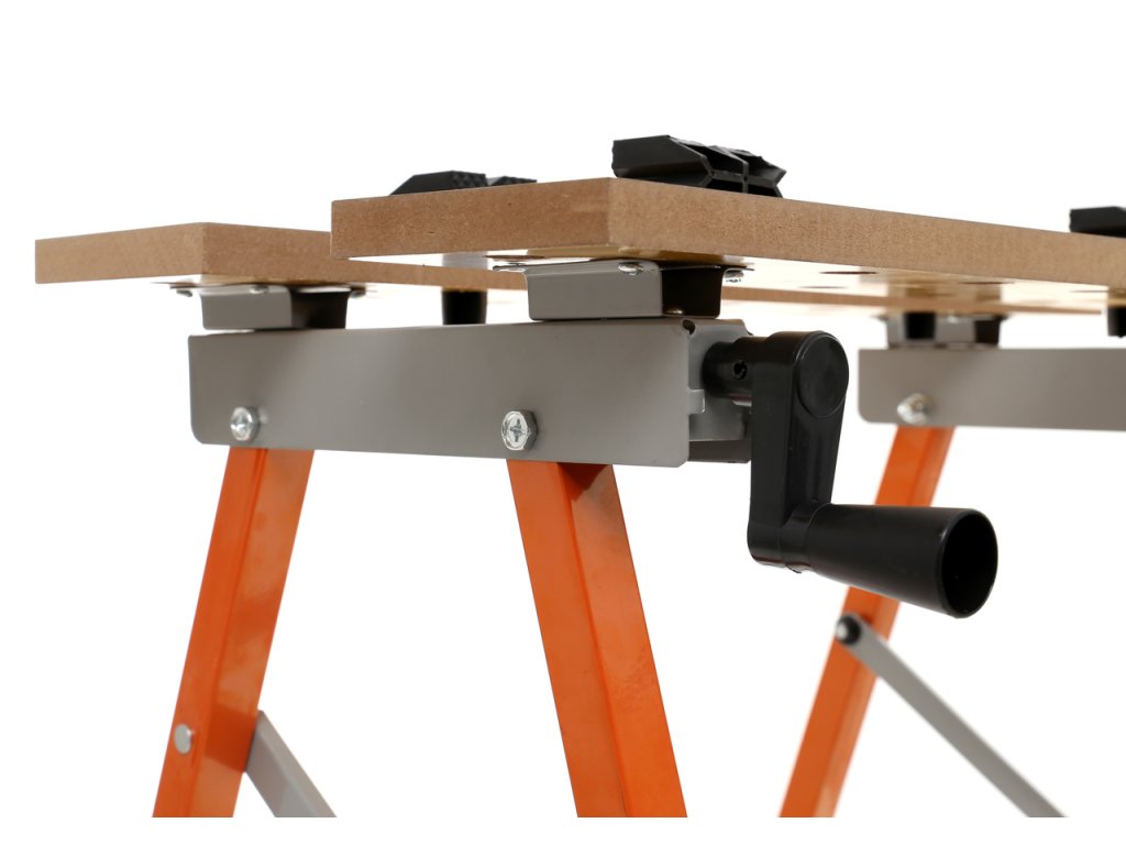 Má rozkládací pracovní desku, která má pevnou konstrukci, centimetrovou a úhlovou stupnici a dají se na ní připevnit různé předměty (např. disky kol, dřevěné latě a jiné)