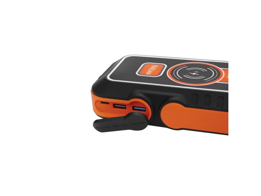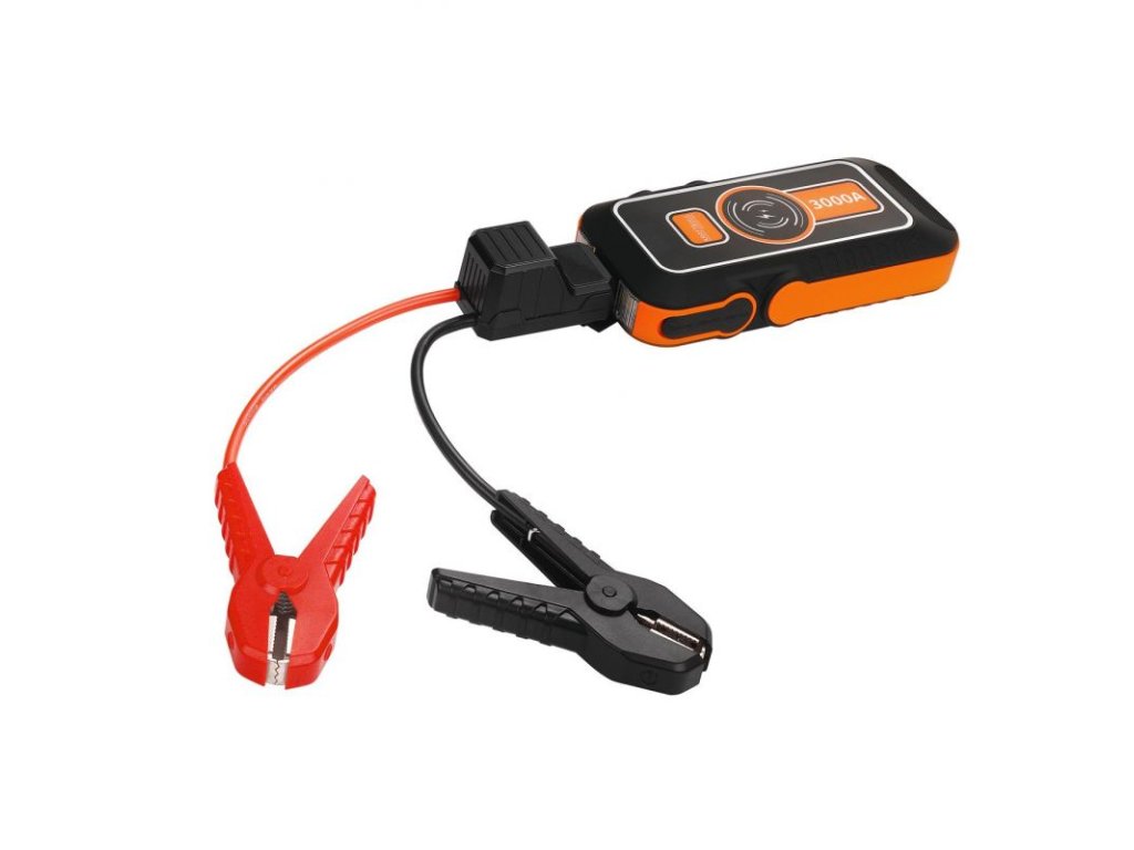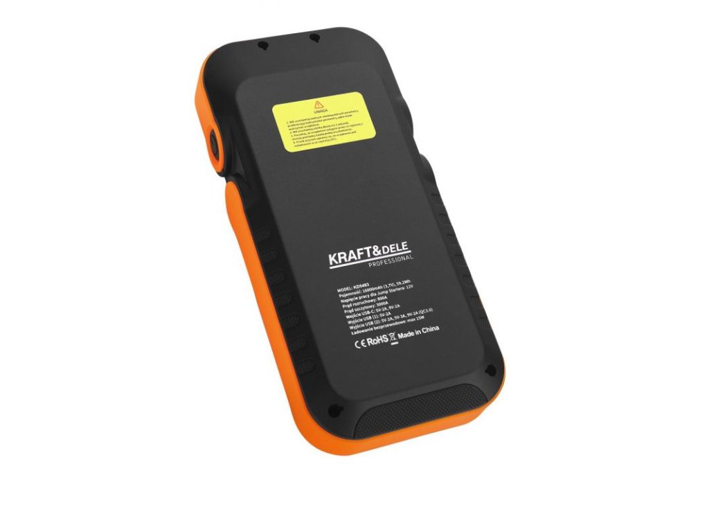 Výkonný startovací booster (jump starter) a powerbanka KD5493 s kapacitou 16 000 mAh je ideální pro nouzové startování vozidel a rychlé nabíjení elektroniky. Podporuje 12V instalace, dokáže nastartovat benzínové motory až do 6,0 l a diesely do 4,0 l. V balení jsou startovací kabely s integrovaným LCD displejem zobrazujícím napětí akumulátoru a hlášení chyb. Zařízení nabízí bezdrátové nabíjení Qi do 15 W, rychlé USB nabíjení (QC3.0) a silnou LED svítilnu se 3 režimy. Pracuje i v náročných podmínkách od -20 °C do +60 °C a dodává se v pevném, přenosném pouzdře.