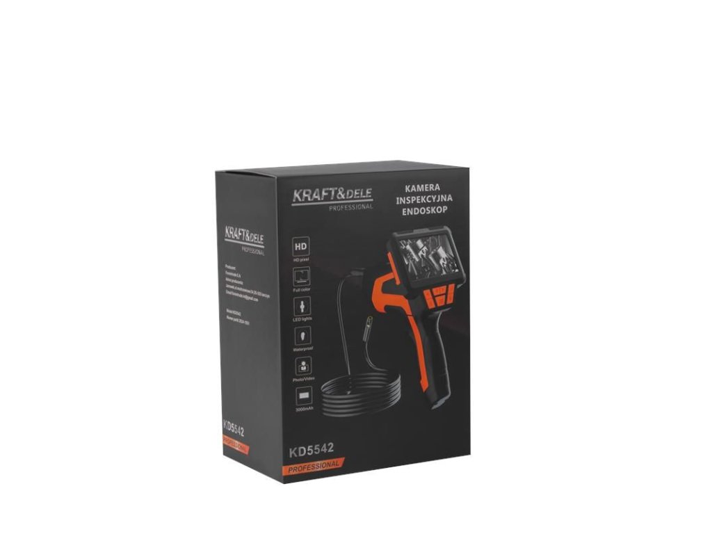 Moderní endoskopická kamera KD5542 je nepostradatelný diagnostický nástroj pro průmysl i servis. 4,3” barevný LCD displej zobrazuje náhled v reálném čase a kamera s rozlišením Full HD 1080p (přední i boční) poskytuje ostrý obraz i v náročných podmínkách. Sonda o průměru 8 mm s délkou kabelu 5 m dosáhne do těžko přístupných míst, zatímco stupeň krytí IP68 (pro kamerovou hlavu) umožní práci ve vlhkém prostředí.