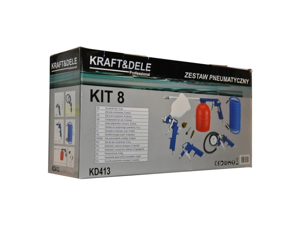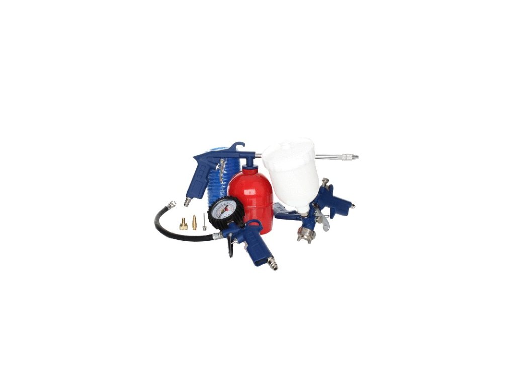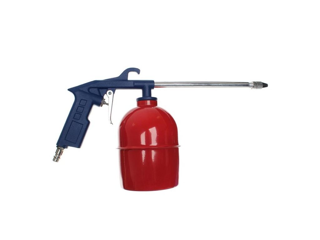 Mycí pistole, takzvaná “olejová pistole”, má dlouhou praktickou stříkací trysku, která usnadňuje mytí a čištění. Nafukovací pistole s manometrem je ideální na nafukování a kontrolu tlaku v pneumatikách. Má gumové pouzdro na manometr. Je vybavena odvzdušňovacím ventilem.