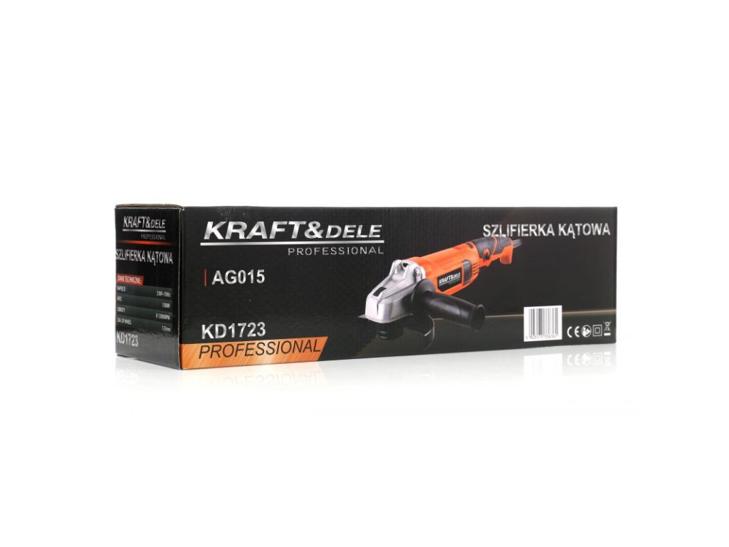 Bruska Kraft&Dele KD1723, určená k řezání, broušení a leštění materiálů jako kov, dřevo, beton, plasty, keramika, kámen a mnoho dalších. Bruska je vybavena kotoučem o průměru 125 mm a výkonným motorem s příkonem 1.300 W. Je vybavena plynulou regulací otáček (funkce SOFT START), která umožňuje plynulé regulování otáček při rozběhu. Taktéž má nastavitelnou regulaci otáček v 6ti ovládacích stupních a aretaci vřetene pro snadnou výměnu kotoučů.