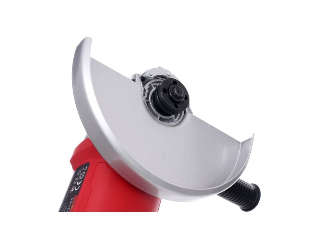 Hlavní rukojeť je vyrobena ze speciálního protiskluzového materiálu, který usnadňuje držení přístroje v ruce. Otočný kryt kotouče zajišťuje bezpečnost před jiskrami a úlomky zpracovávaného materiálu. Bruska splňuje přísné bezpečnostní normy a má systém měkkého startu, který zvyšuje bezpečnost práce a více než zdvojnásobuje životnost převodu.