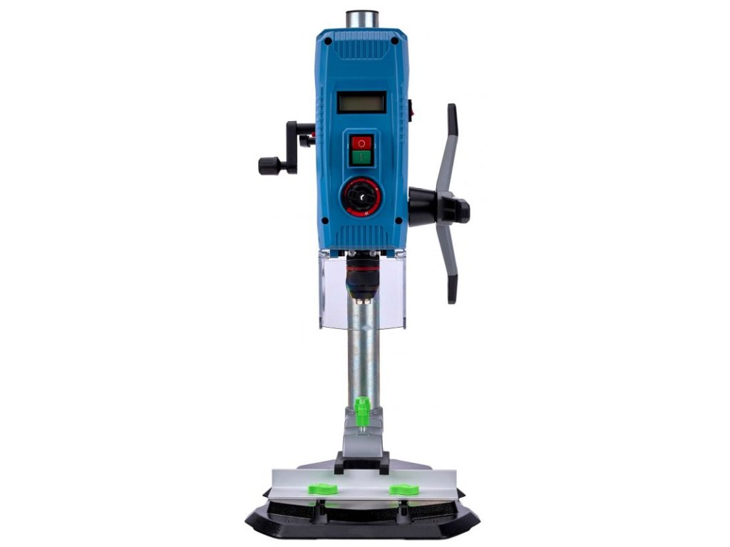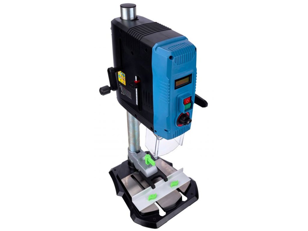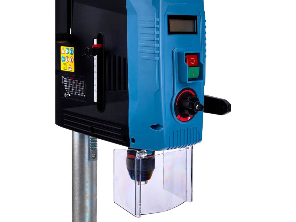 Výkonná a přesná stolní/sloupová vrtačka KRAFT&DELE WDS2140 s motorem 2000 W je ideální do dílny i na stavbu. Elektronická regulace otáček v rozsahu 500–2600 ot./min, kovové bezklíčové sklíčidlo 1,5–13 mm a stabilní, výškově i úhlově nastavitelný stůl umožňují přesné vrtání do oceli, dřeva i plastu. Křížový laser přesně ukazuje místo vrtu, dvě LED lampy zlepšují viditelnost a podsvícený LCD panel zobrazuje otáčky i pozici hloubky vrtání.