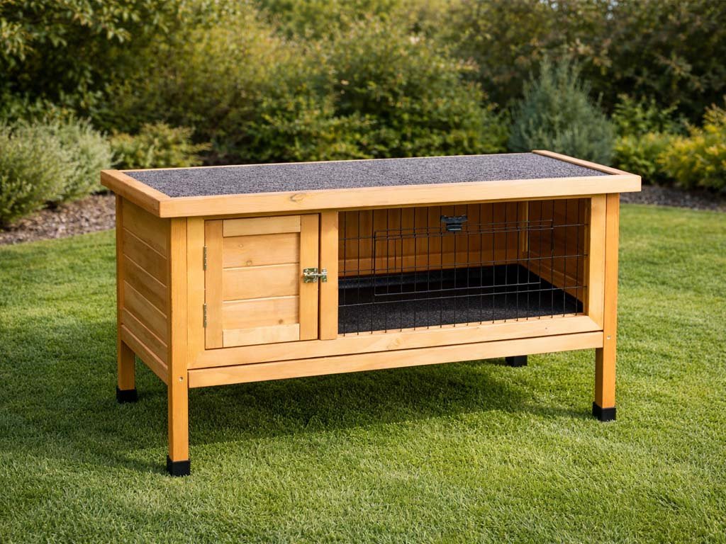 Lucy králíkárna z jedlového dřeva. Králíkárna Lucy představuje jednoduché řešení, jak ubytovat králíčka, morče, či jiného hlodavce v soukromí po celý rok. Střecha: asfaltový bitumenový pás (pultová). Rozměry: 92 cm × 46 cm × 72 cm. Snadná montáž. Doručení: 1 balík, 11 kg Lucy králíkárna KENNIVA Lucy králíkárna KENNIVA Lucy.