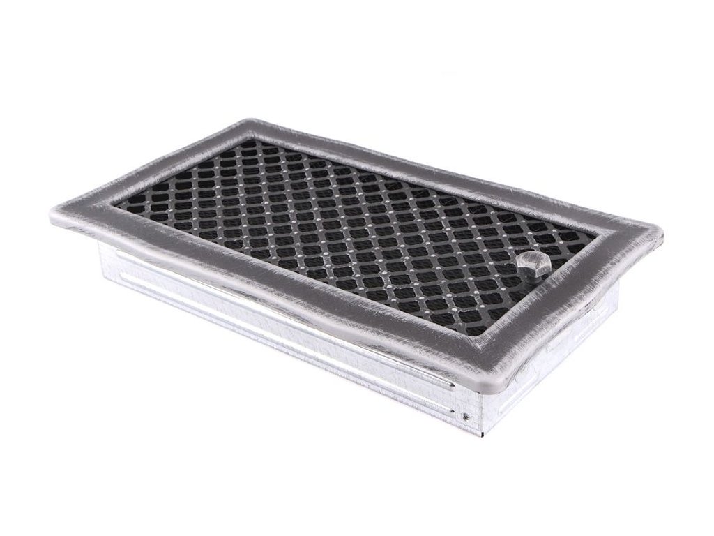 Krbová mřížka 16x32 cm, PREMIUM DECO stříbrná patina s žaluzií