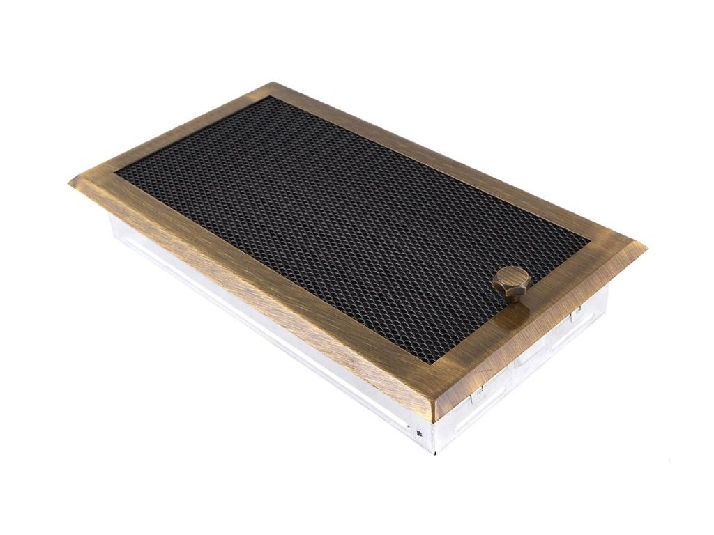 Krbová mřížka 16x32 cm, PREMIUM mosazná patina s žaluzií