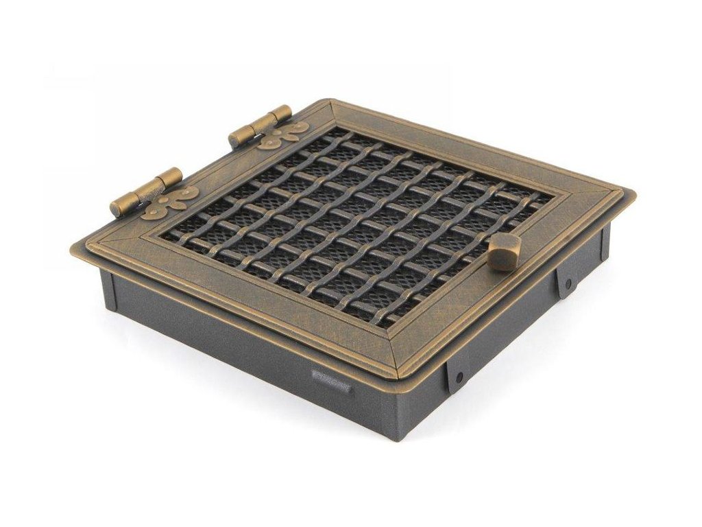 Krbová mřížka stylová 21x21cm s žaluzií zlatá patina