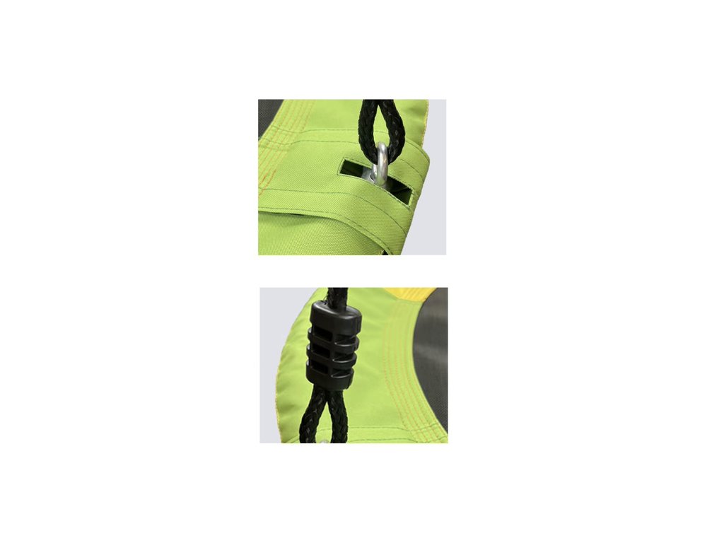 - Možnost instalace: Zavěšení na strom, rám, strop nebo hřiště. Dva způsoby upevnění: na 2 háčky pro předozadní výkyv nebo na 1 hák pro otáčení o 360°.