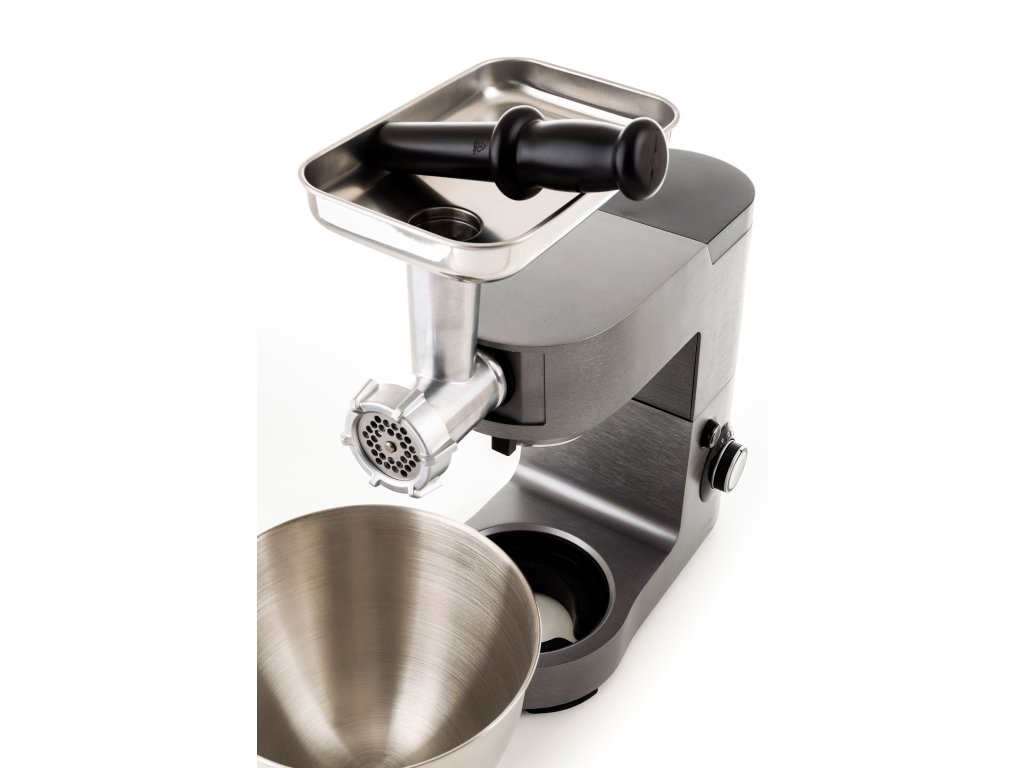 - Mlýnek na maso obsahuje 3 velikosti mlecích destiček pro různou hrubost masa. Příprava sekané, karbanátků nebo třeba výborného tatarského bifteku je pro něj hračkou a pro vás radostí.