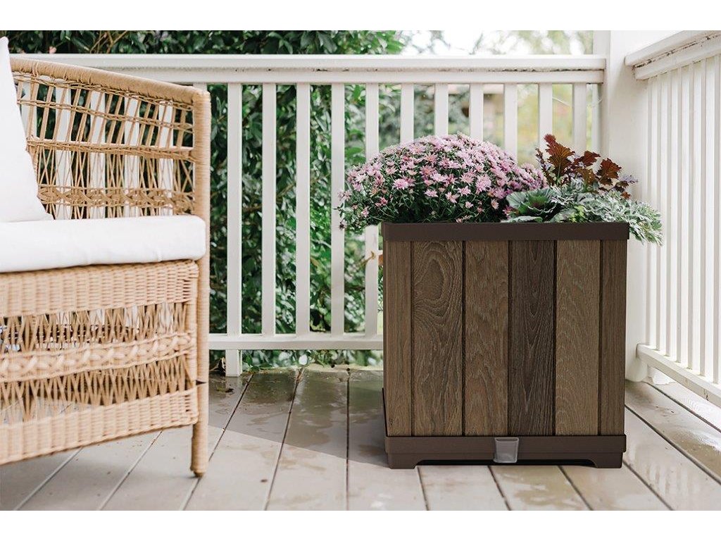 Díky unikátní technologii DecoCoat odolá květináč nepříznivým povětrnostním vlivům, rzi a hnilobě. Zároveň si zachová svou barvu. I po letech tedy vypadá, jako byste ho právě vyndali z obalu a smontovali. Textura stěn připomíná skutečné dřevo. Navíc je nenáročný na údržbu.