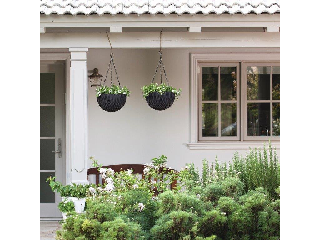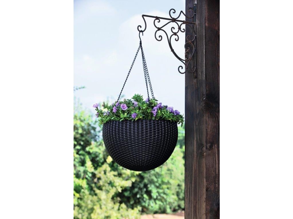 Závěsný květináč Hanging Sphere značky Keter připomíná svým designem přírodní ratanovou vazbu v grafitové barvě. Skvěle tak doplní jak moderní, tak i tradiční look okolí. Květiny v něm přirozeně vyniknou.