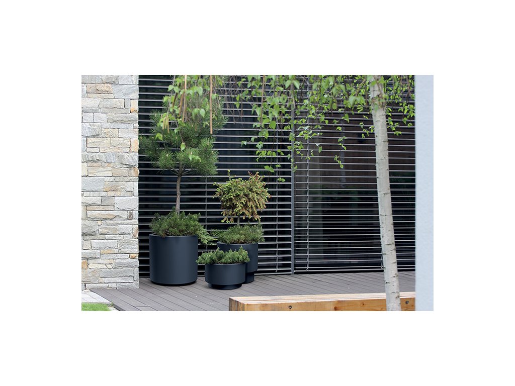 Květináč do venkovního i vnitřního prostředí, objem vložky 31 l, vyrábí se z plastu, rozměry 46,8 x 45 x 46,8 cm, barva antracitová.