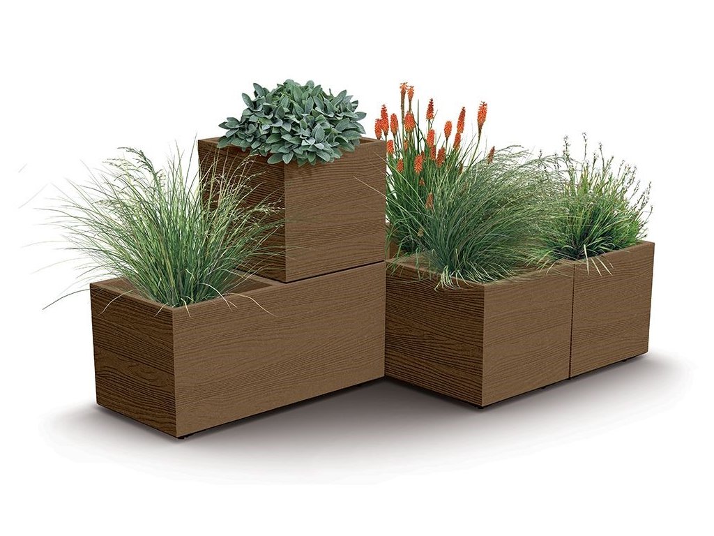 Celá řada květináčů MADERA CASE je modulární a jednotlivé květináče jsou stohovatelné. Pokud si jich tedy pořídíte více, můžete je umístit na sebe a vytvořit patrovou dekoraci s květinami na terasu, balkon nebo třeba do kanceláře. Poskládáte je na sebe podle vlastní fantazie. Stylové provedení věrně napodobuje dřevo. Pokud navíc vlastníte zahradní podpěry Floo pro popínavé rostliny, potěší vás, že je můžete pro květináče využít.