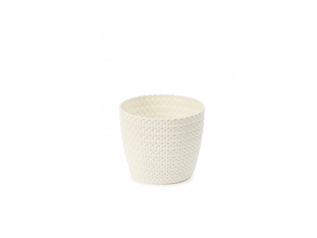 Květináč má unikátní dizajn je z vnější strany zdobený pleteným dekorem na povrchu. Květináč je odolný vůči běžným škrábancům.