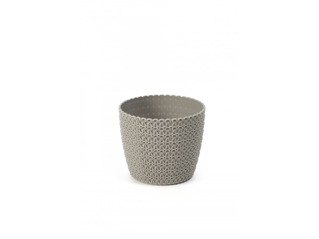 Květináč má unikátní dizajn je z vnější strany zdobený pleteným dekorem na povrchu. Květináč je odolný vůči běžným škrábancům.