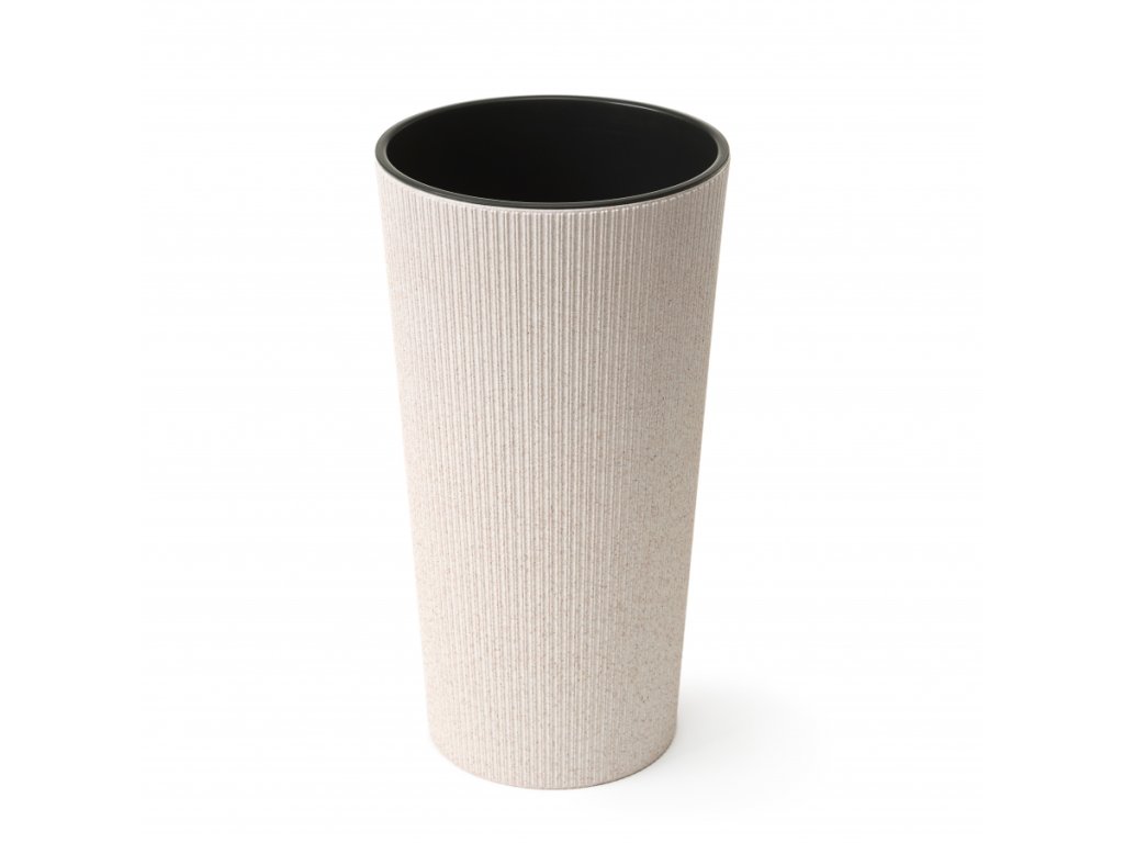 Moderní plastový květináč LILIA ECO JUMPER proužek s příměsí až 40% dřeva v každém květináči. Květináč se strukturovaným dizajnem a kónickým tvarem, který působí velmi luxusně.