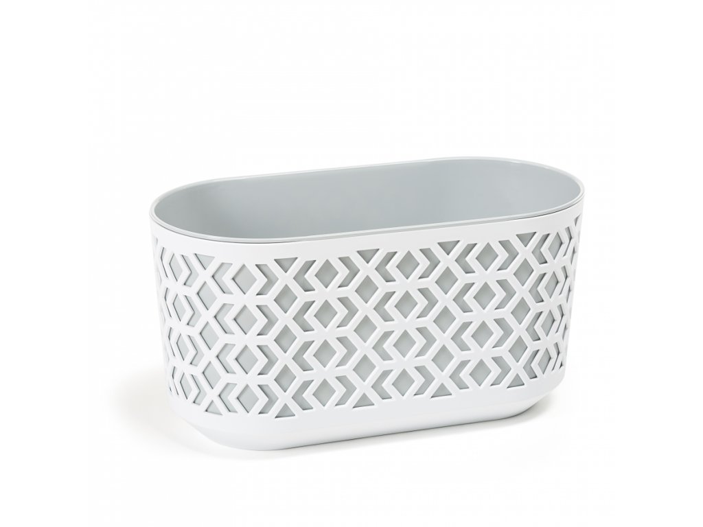 Truhlík (vklad) má šedou barvu, obal (děrovaný truhlík) je v bílé barvě (krémovo/bílá). Truhlík je odolný vůči běžným škrábancům.