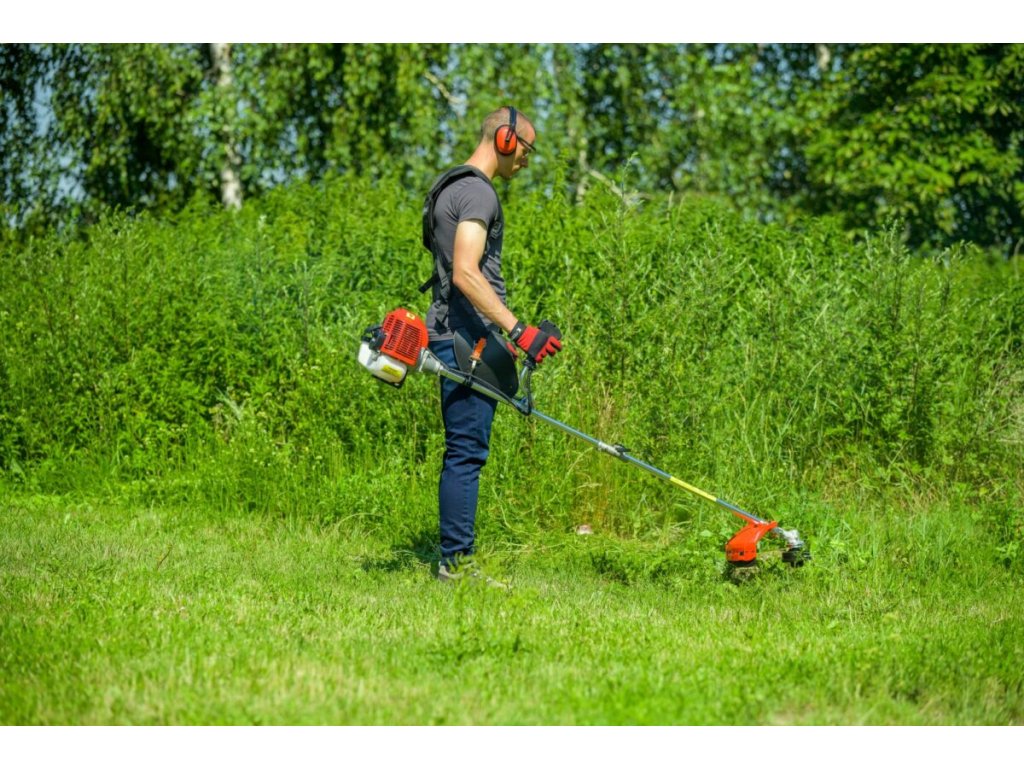 - Je vybaven strunovou hlavou (pracovní šířka 45 cm) a řezacím kotoučem (pracovní šířka 25,5 cm).