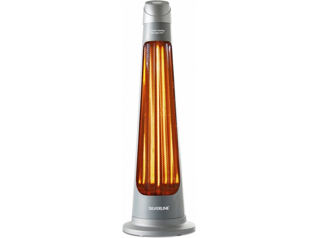 Silverline Digital IP X4 topidlo - infrazářič, má dva stupně výkonu 600 a 1200 W, je otočný 90°, vytopí až 14 m2, je dodáván včetně dálkového ovládání. Topidlo je vybaveno časovačem(timer) max doba je 6h.