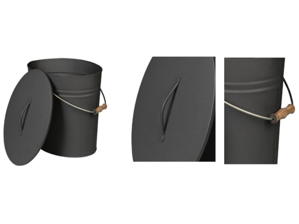Oválná nádoba na popel s víkem 24 l. Nádoba na popel, pelety, brikety nebo jiný sypký materiál, má dřevěnou rukojeť pro pohodlnou manipulaci, víko je opatřené kovovým uchem, barva - antracit.