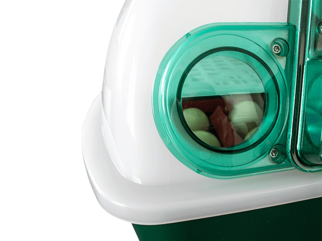 Líheň na drůbež, poloautomatické otáčení, na 12 slepičích vajec, ukazatel teploty, digitální regulace teploty 30-40°C, nádržka na vodu. Jedná se o osvědčenou velice precizně zpracovanou líheň na kuřata, křepelky, husy, kachny, bažanty či exotické ptactvo. Tato praktická líheň má univerzální rošty pro všechny druhy vajec a přitom skvěle funguje i jako dolíheň. Vajíčka budete mít pod kontrolou díky kukátkům ve víku a na digitálním displeji můžete sledovat aktuální teplotu v líhni. Otočný rošť v líhni usnadní práci při otáčení vajec a Vy tak pouze otočíte páčkou. Výborné jsou také externí nádržky, díky kterým nebudete muset líheň pro udržování vlhkosti otevírat. Líheň je vyrobena z kvalitního plastu, který je pevný, odolný a snadno omyvatelný, takže údržba a čištění líhně bude hračka a vydrží Vám po mnoho let.