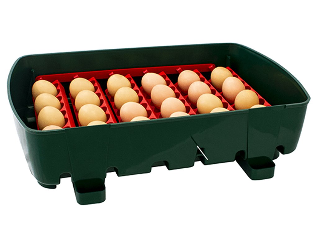 Kapacita s otočným roštem: 24 slepičích, 96 křepelčích, 24 husích, 24 kachních nebo 24 bažantích vajec.