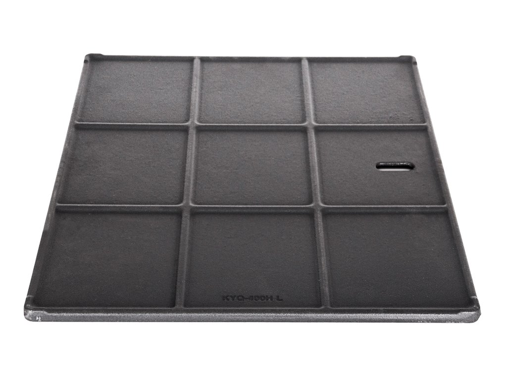 Litina patří mezi nejodolnější materiály, které se pro grilování používají. Je vysoce odolná proti vysokým teplotám a poškrábání. Litinový plát je hladký a využijete ho především pro grilování nakrájené zeleniny, vajíček a sýrů, ale i pro grilování steaků, větších kusů zeleniny a ryb.