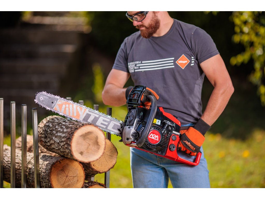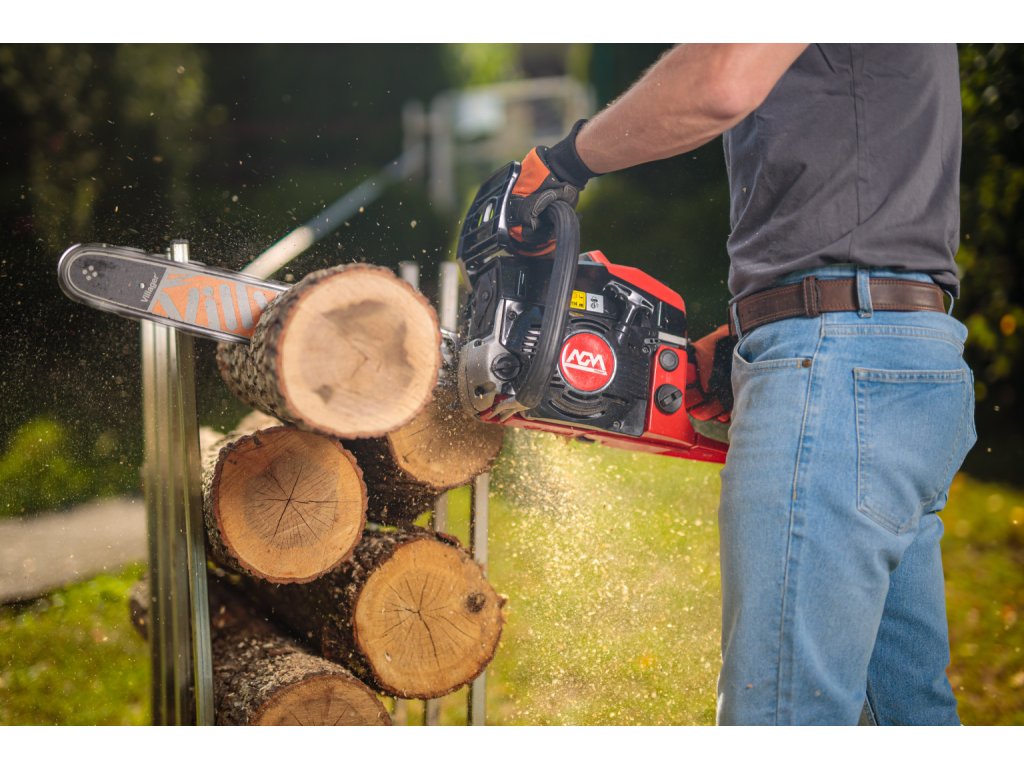 Benzínová řetězová pila AGM o obsahu motoru 45,8 cm3 s délkou lišty 45 cm, je výborným pomocníkem při kácení a odvětvování stromů, rozřezávání kmenů, polen a také výrobků a produktů ze dřeva. Pilu můžete používat na domácí a hobby použití.