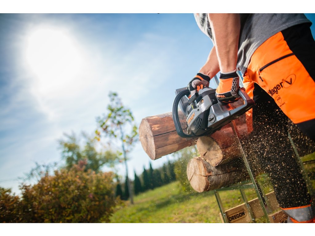 Benzínová řetězová pila VILLAGER o obsahu motoru 38,5 cm3 s délkou lišty 35 cm, je výborným pomocníkem při kácení a odvětvování stromů, rozřezávání kmenů, polen a při tesařské práci. Pilu můžete používat na domácí a hobby použití.